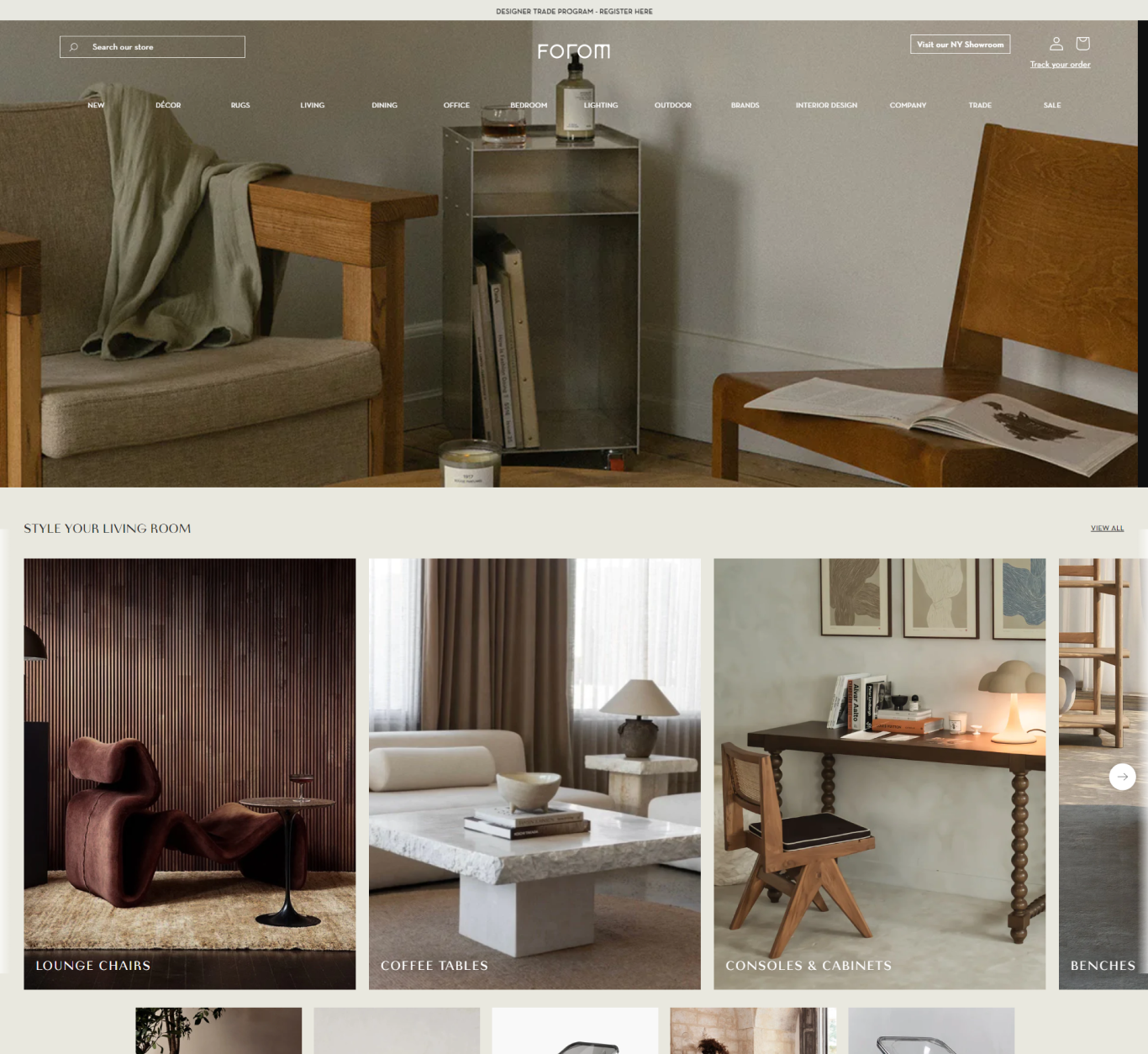 Forom is a state-of-the-art furniture store that offers a unique, crafty shopping experience through its minimalist design. Our agency has had the pleasure of working with Forom on a variety of web development, design, and product data processing work. By partnering with the client, we’ve been able to enhance their online presence and optimize their store design to improve customer engagement and conversion rates.