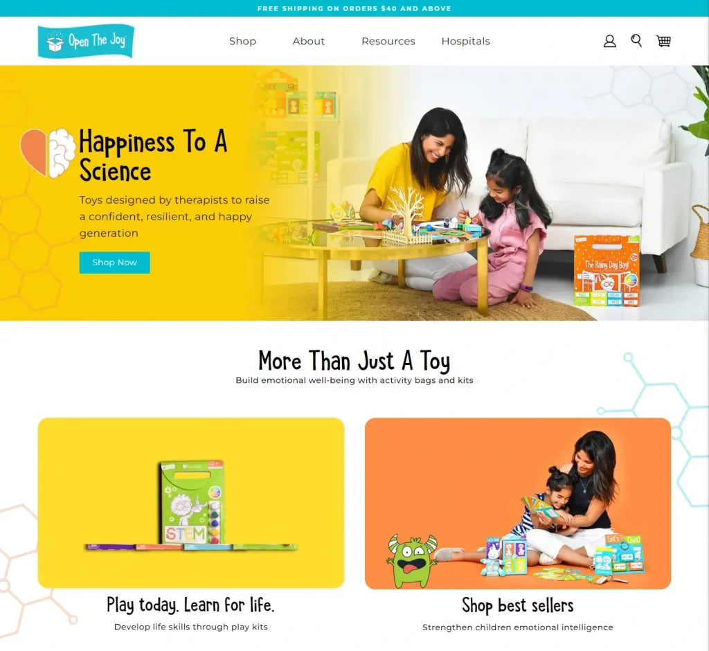 Open The Joy is an innovative New York-based online store that offers a wide range of engaging activity and educational products for children. Our agency had the privilege of collaborating with the client to develop a customized store design that captures the store’s playful, vibrant personality and promotes fun, interactive learning experiences for kids.