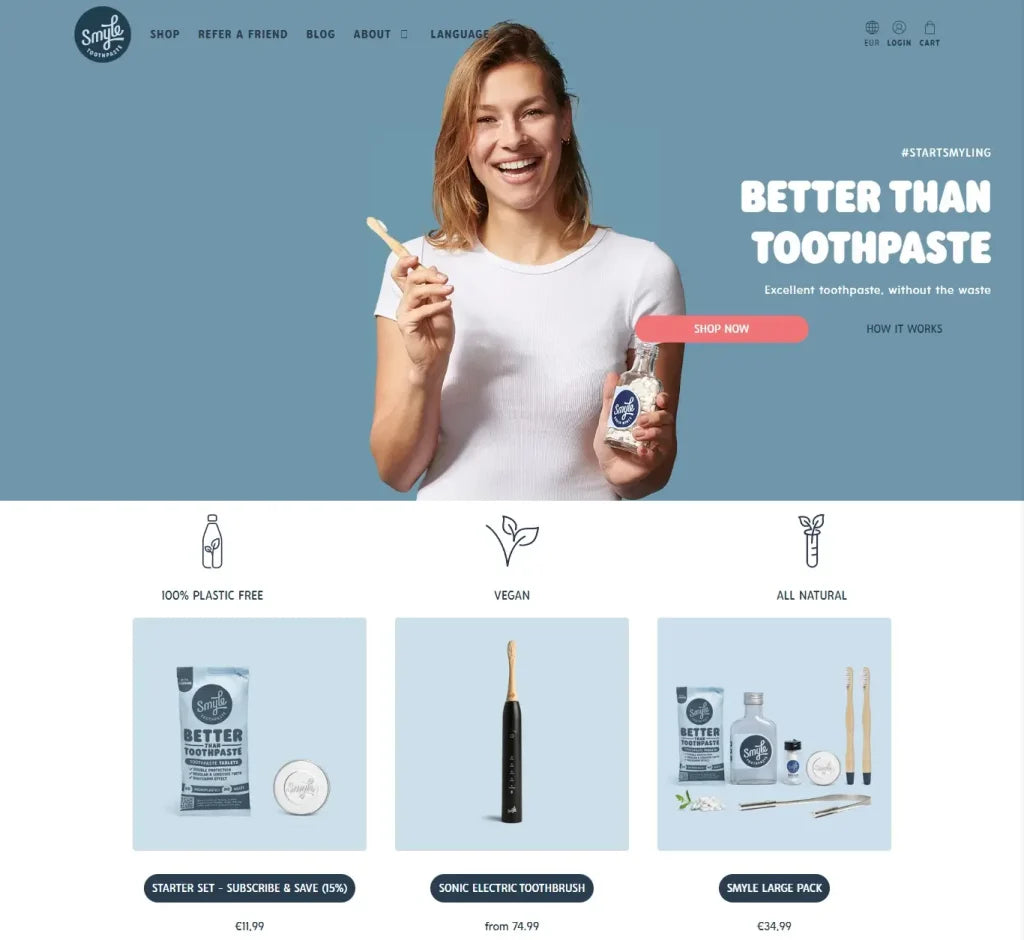 WeSmyle is an eco-conscious brand that specializes in 100% plastic-free Toothpaste Tablets. As their trusted Shopify partner, we have provided our expertise in various areas such as development, design, and international expansion.